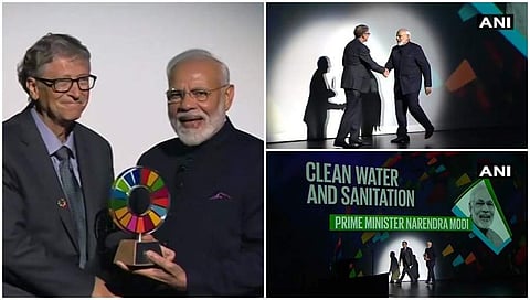 ಅವರು ವಿಶ್ವಸಂಸ್ಥೆಯಲ್ಲಿ ಇಂದು ಸ್ವಚ್ಛ ಭಾರತ ಅಭಿಯಾನಕ್ಕೆ 'ಗ್ಲೋಬಲ್ ಗೋಲ್ ಕೀಪರ್ ಅವಾರ್ಡ್' ಸ್ವೀಕರಿಸಿ ಸಮಾರಂಭವನ್ನು ಉದ್ದೇಶಿಸಿ ಮಾತನಾಡಿದರು. ಈ ಪ್ರಶಸ್ತಿಯನ್ನು ಬಿಲ್ ಅಂಡ್ ಮೆಲಿಂಡಾ ಗೇಟ್ಸ್ ಫೌಂಡೇಶನ್ ನರೇಂದ್ರ ಮೋದಿ ನೇತೃತ್ವದ ಸರ್ಕಾರ ಸ್ವಚ್ಛ ಭಾರತ ಅಭಿಯಾನ ಆರಂಭಿಸಿದ್ದಕ್ಕೆ ನೀಡಿದೆ.
