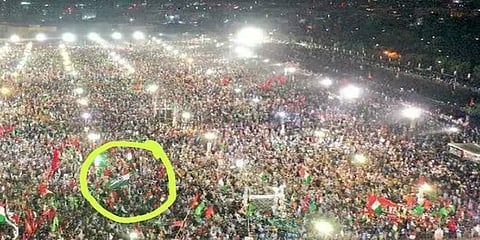 ಕರಾಚಿಯಲ್ಲಿ ಪಾಕ್ ಪ್ರಧಾನಿ ಇಮ್ರಾನ್ ಖಾನ್ ವಿರುದ್ಧ ಪಿಡಿಎಂ ಎಂಬ ರಾಜಕೀಯ ಪಕ್ಷ ನಡೆಸಿದ ಬೃಹತ್ ಸಮಾವೇಶದಲ್ಲಿ ಭಾರತದ ಧ್ವಜ ಹಾರಾಡಿದೆ ಎಂಬ ಮಾಹಿತಿ ಸಾಮಾಜಿಕ ಜಾಲತಾಣದಲ್ಲಿ ವೈರಲ್ ಆಗಿತ್ತು. ಈ ಬಗ್ಗೆ ಫ್ಯಾಕ್ಟ್ ಚೆಕ್ ನಡೆದಿದ್ದು, ಇದೊಂದು ತಿರುಚಿದ ಚಿತ್ರ ಎಂಬುದು ತಿಳಿದುಬಂದಿದೆ.