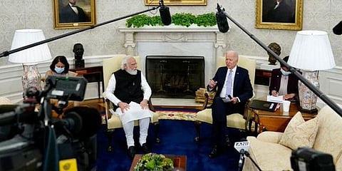 ವಾಷಿಂಗ್ಟನ್: ಅಮೆರಿಕ ಪ್ರವಾಸದಲ್ಲಿರುವ ಪ್ರಧಾನಿ ನರೇಂದ್ರ ಮೋದಿ ಅವರು ಶನಿವಾರ ಅಧ್ಯಕ್ಷ ಜೋ ಬೈಡನ್ ಅವರೊಂದಿಗೆ ಶ್ವೇತಭವನದಲ್ಲಿ ದ್ವಿಪಕ್ಷೀಯ ಮಾತುಕತೆ ನಡೆಸಿದ್ದು, ಈ ವೇಳೆ ಇಬ್ಬರೂ ನಾಯಕರು ಭಾರತ-ಅಮೆರಿಕ ನಡುವಣ ಸ್ನೇಹ ಇನ್ನಷ್ಟು ಗಟ್ಟಿಯಾಗಲಿದೆ ಎಂದು ವಿಶ್ವಾಸ ವ್ಯಕ್ತಪಡಿಸಿದ್ದಾರೆ.
