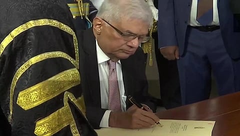 ಕೊಲಂಬೊ: ಶ್ರೀಲಂಕಾದ ಅಧ್ಯಕ್ಷರಾಗಿ ರಾನಿಲ್ ವಿಕ್ರಮಸಿಂಘೆ ಅವರು ಇಂದು ಪ್ರಮಾಣ ವಚನ ಸ್ವೀಕರಿಸಿದರು. ಜುಲೈ 20 ರಂದು ಬುಧವಾರ ನಡೆದ ಅಧ್ಯಕ್ಷೀಯ ಚುನಾವಣೆಯಲ್ಲಿ ಗೆಲ್ಲುವ ಮುಖೇನ ರಾನಿಲ್ ವಿಕ್ರಮಸಿಂಘೆ ಶ್ರೀಲಂಕಾದ ಒಂಬತ್ತನೇ ಅಧ್ಯಕ್ಷರಾಗಿ ಹೊರಹೊಮ್ಮಿದ್ದಾರೆ.