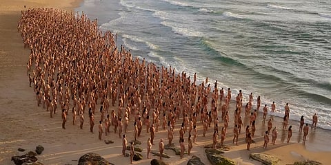 ಇಂದು ಬೆಳಗ್ಗೆ ಸುಮಾರು 2,500 ಪುರುಷರು ಮತ್ತು ಮಹಿಳೆಯರು ಬೋಂಡಿ ಬೀಚ್ ನಲ್ಲಿ ಬೆತ್ತಲೆಯಾಗಿ, ಬೆತ್ತಲೆ ಫೋಟೋ ತೆಗೆಯುವುದಕ್ಕೆ ಖ್ಯಾತಿ ಗಳಿಸಿರುವ ಕಲಾವಿದ ಸ್ಪೆನ್ಸರ್ ಟ್ಯೂನಿಕ್ ಅವರಿಗೆ ಪೋಸ್ ನೀಡಿದರು.