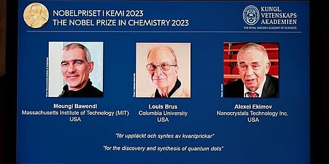 ಸ್ಟಾಕ್ಹೋಮ್: ಟಿವಿ ಮತ್ತು ಲ್ಯಾಂಪ್ಸ್ ಗಳಲ್ಲಿ ಬಳಸುವ ಸಣ್ಣ "ಕ್ವಾಂಟಮ್ ಡಾಟ್ಗಳನ್ನು" ಅಭಿವೃದ್ಧಿಪಡಿಸಿದ್ದಕ್ಕಾಗಿ ಅಮೆರಿಕದ ಮೂವರು ವಿಜ್ಞಾನಿಗಳಿಗೆ 2023ನೇ ಸಾಲಿನ ರಸಾಯನಶಾಸ್ತ್ರದ ನೊಬೆಲ್ ಪ್ರಶಸ್ತಿಯನ್ನು ಬುಧವಾರ ಘೋಷಿಸಲಾಗಿದೆ.