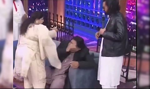 ಇಸ್ಲಾಮಾಬಾದ್: ಖ್ಯಾತ ಪಾಕ್ ಗಾಯಕಿ ಶಾಜಿಯಾ ಮಂಜೂರ್ ಗೆ ನೇರ ಪ್ರಸಾರ ಕಾರ್ಯಕ್ರಮದಲ್ಲಿ ಹನಿಮೂನ್ ಬಗ್ಗೆ ಪ್ರಶ್ನೆ ಮಾಡಿದ ಹಾಸ್ಯ ಕಲಾವಿದನಿಗೆ ಕಪಾಳಮೋಕ್ಷ ಉಂಟಾಗಿದೆ. ಹಾಸ್ಯಕಲಾವಿದ ಶೆರ್ರಿ ನನ್ಹಾಗೆ ಸ್ವತಃ ಗಾಯಕಿ ಶಾಜಿಯಾ ಮಂಜೂರ್ ಕಪಾಳ ಮೋಕ್ಷ ಮಾಡಿದ್ದು, ಇಬ್ಬರ ನಡುವೆ ವಾಗ್ವಾದ ಉಂಟಾಗಿದೆ.