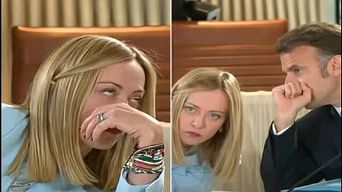 ಕೆನಡಾದ ಆಲ್ಬರ್ಟಾದಲ್ಲಿ 51ನೇ G7 ಶೃಂಗಸಭೆಯಲ್ಲಿ, ವಿಶ್ವದ ಅತ್ಯಂತ ಶಕ್ತಿಶಾಲಿ ಆರ್ಥಿಕತೆಗಳ ನಾಯಕರು ವ್ಯಾಪಾರ, ಭದ್ರತೆ ಮತ್ತು ತಂತ್ರಜ್ಞಾನ ಸೇರಿದಂತೆ ಜಾಗತಿಕ ಸಮಸ್ಯೆಗಳ ಕುರಿತು ಚರ್ಚಿಸಲು ಒಟ್ಟುಗೂಡಿದ್ದರು. ಅವರಲ್ಲಿ, ಮೆಲೋನಿ ಮತ್ತು ಮ್ಯಾಕ್ರನ್ ಅಕ್ಕಪಕ್ಕದಲ್ಲಿ ಕುಳಿತಿದ್ದರು.
