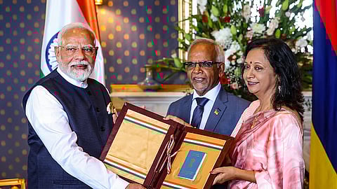 ಪೋರ್ಟ್ ಲೂಯಿಸ್: ಮಾರಿಷಸ್ ಪ್ರಧಾನ ಮಂತ್ರಿ ರಾಮಗೊಲಂ ಹಾಗೂ ಅವರ ಪತ್ನಿ ವೀಣಾ ರಾಮಗೂಲಂ ದಂಪತಿಗೆ ಭಾರತದ ಸಾಗರೋತ್ತರ ನಾಗರಿಕರ (OCI) ಕಾರ್ಡ್ಗಳನ್ನು ವಿತರಿಸಿರುವುದಾಗಿ ಪ್ರಧಾನಿ ಮೋದಿ ಮಂಗಳವಾರ ಘೋಷಿಸಿದರು.